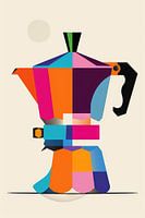 Dit dynamische kunstwerk toont een iconische Bialetti espressopot in levendige, geometrische kleurblokken. De gedurfde, contrasterende kleuren en strakke lijnen brengen energie en vreugde in elke kamer. Perfect voor moderne keukens en cafés, deze illustratie past naadloos in de hedendaagse inrichting en trekt ieders aandacht. Ideaal voor liefhebbers van pop-art en geometrische abstractie.