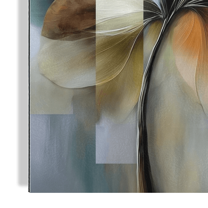 Abstracte bloem in aardetinten met kubistische elementen