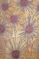 Dit werk toont een abstracte interpretatie van bloemen, weergegeven in tinten paars en goud. De bloemvormen stralen uit vanuit het centrum, met lijnen en patronen die beweging en energie suggereren. De mix van gouden en paarse tinten creëert een gevoel van diepte en textuur, terwijl de subtiele overgangen tussen de kleuren een harmonieus geheel vormen. Dit werk is een perfecte aanvulling voor een moderne woonruimte of kantoor, waar het een vleugje abstracte schoonheid en elegantie toevoegt.