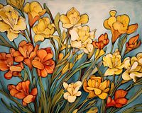Jouw gekozen kunst op doek, gespannen in een aluminium frame. Snel en eenvoudig te verwisselen voor een frisse uitstraling en helemaal zoals jij het wilt.