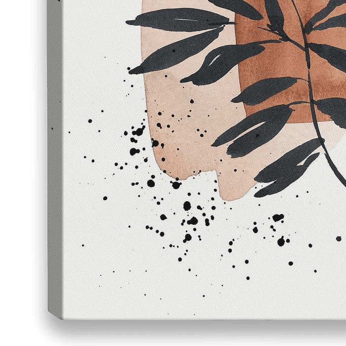 Wabi-sabi kunst met abstracte vormen in warme, aardetinten zoals terracotta, lichtroze en beige bruin en botanische elementen in zwart. Perfect voor een interieur met aardse kleuren of mediterraane stijl.