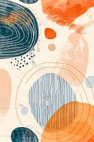 Dit werk is een dynamische collage van cirkels en texturen, speels verdeeld over een helder doek. Met contrasterende kleuren van donkerblauw, levendig oranje en zachte beige tonen, zet het een vrolijk en energiek beeld neer. De toevoeging van stippen en lijnen geeft het extra diepte. Een perfect werk voor een levendige kamer of een…