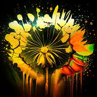 Door gebruik te maken van diverse digitale technieken en een palet van warme en koele kleuren heb ik een uitgebloeide paardenbloem tot leven gebracht.