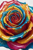 Deze levendige kunstuiting brengt een explosie van kleur in elke ruimte. Het stelt een roos voor, gevangen in het moment, met behulp van dikke, dynamische penseelstreken die lijken te dansen over het doek. De kleuren blauw, geel, rood en oranje vloeien naadloos in elkaar over en geven het gevoel van een droomachtige tuin in volle bloei.…