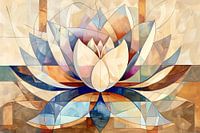 Ontdek de serene schoonheid van abstracte natuur met dit kunstzinnige ontwerp dat een lotusbloem in geometrische vormen toont. De delicate balans tussen warme en koele tinten creëert een harmonieuze sfeer die elke ruimte kan verrijken. De subtiele overlapping van lijnen en vlakken wekt een gevoel van diepte en complexiteit, terwijl het spel van licht en schaduw de illusie van beweging geeft. Dit kunstwerk is een ode aan de eenvoudige pracht van de natuur, vertaald naar een moderne context die past in elk hedendaags interieur. Het is de perfecte keuze voor wie een vleugje elegantie en contemplatie aan zijn omgeving wil toevoegen.
