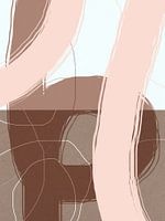 Moderne abstracte kunst met geometrische, organische vormen, lijnen en texturen in pastelkleuren.