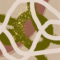 Moderne abstracte kunst met geometrische, organische vormen, lijnen en texturen in pastelkleuren. Mixed media digitale kunst collage.