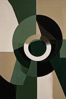 Dit minimalistische kunstwerk spreekt tot de verbeelding door zijn eenvoud en diepte. Met zorgvuldig gekozen tinten groen, zwart en beige brengt dit ontwerp een stijlvolle rust in elke ruimte. De dynamiek tussen de vormen en kleuren zorgt voor een visuele dialoog, waarmee het perfect is voor de moderne inrichting. Of het nu in een strak kantoor of een sereen ingerichte woonkamer hangt, het nodigt altijd uit tot contemplatie en rust.