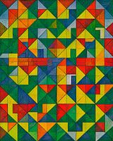 Dit intrigerende kunstwerk is een eerbetoon aan de schoonheid van geometrische abstractie en voegt een moderne en levendige sfeer toe aan elke ruimte. Het biedt een visueel aantrekkelijke en dynamische compositie die de kijker betovert en uitnodigt om de harmonie van geometrische vormen en levendige kleuren te ervaren.