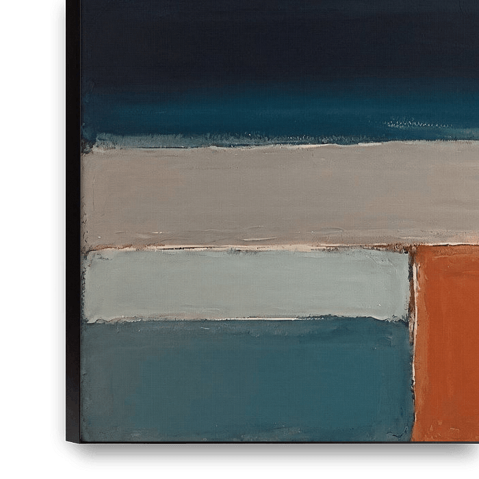 Dit stuk is een prachtig voorbeeld van hedendaagse abstracte kunst, waarbij een minimalistische benadering wordt gehanteerd om een krachtig visueel statement te maken. De zorgvuldige balans tussen warme en koele tinten, gecombineerd met de strategische plaatsing van kleurvlakken, wekt een gevoel van rust en contemplatie op. Het gebruik…