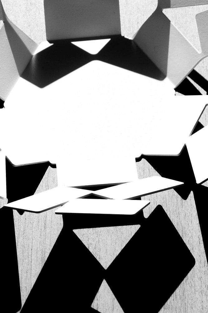 Alessi schaal op houten tafel. Schaduw komt door zonlicht vanuit het raam op de schaal.