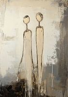 Abstracte Mensen - Op dit abstract schilderij zie je twee gestileerde mensen in een neutrale kleurtonen, die samen een harmonieuze en moderne uitstraling creëren met eenvoudige vormen en zachte lijnen.