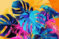 Deze kunstdruk toont monsterabladeren in een abstracte en kleurrijke compositie. De levendige roze, oranje en blauwe tinten geven het kunstwerk energie en creativiteit. De dynamische opstelling van de bladeren en het kundige gebruik van kleuren en texturen geven deze print een expressieve en moderne uitstraling. Dit ontwerp is ideaal voor residentiële of commerciële ruimtes die op zoek zijn naar een gedurfd accent en zal iedereen aanspreken die houdt van een artistieke en levendige sfeer in hun omgeving.