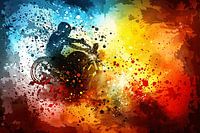 Koop dit abstracte kunstwerk Abstracte Motorrijder in Eplosie van Kleur van Art & Soul Creations op canvas, aluminium dibond, (ingelijste) fotoprint, behang en ArtFrame, op maat geprint in Fine-Art kwaliteit.