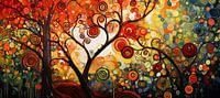 Details: natuur, bomen, herfst, abstract, figuratief, oranje, rood, geel, blauw, groen, Warm glow