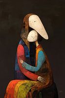 Details: abstract, schilderij, omhelzing, liefde, kleurrijk, geometrisch, donkere achtergrond, moderne kunst,…