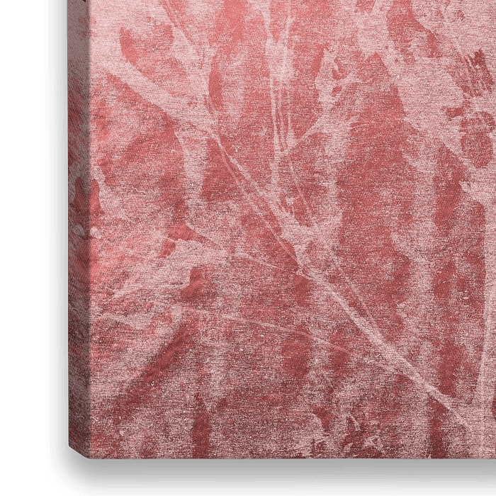 Monoprint van een echte plant, verschillende texturen en effecten creëren een dromerig schilderij vol roze licht.