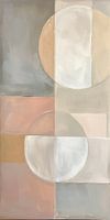 'Abstracte Samensmelting' is een modern kunstwerk waarin zachte pastelkleuren en geometrische vormen samenkomen om een rustgevend en harmonieus beeld te vormen. Het spel van licht en schaduw, gecombineerd met de subtiele overlapping van cirkels en vierkanten, creëert een dynamische balans. Dit stuk is een stijlvolle toevoeging aan elk interieur en nodigt uit tot contemplatie en innerlijke rust.