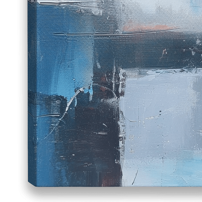 Abstracte Spanning | Essence of Cosmos - dynamisch abstract, moderne textuur Details: abstract, modern, dynamisch, canvas, textuur, blauw, grijs, wit, geel, zwart Kleuren: blauw, grijs, wit, geel, zwart, zilver, marineblauw Abstracte Spanning