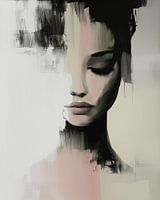 "Abstracte Stilte" is een visuele verkenning van introspectie en emotionele kwetsbaarheid, weergegeven door een abstract-figuratieve kunststijl. De compositie toont het gezicht van een vrouw, deels gehuld in schaduw en deels vervaagd in een waaier van penseelstreken.…