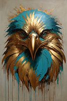 Dit dynamische, moderne kunstwerk vangt de essentie van kracht en vrijheid. De gebruikte techniek zorgt voor een levendig contrast tussen het glanzende goud en het diepe turkoois, waardoor de adelaar op het doek bijna tot leven komt. Het abstracte ontwerp nodigt uit tot interpretatie en reflectie, terwijl de krachtige penseelstreken en de rijke kleuraccenten een diepe indruk achterlaten. Dit stuk zou een centraal punt in elke ruimte kunnen zijn, inspirerend en oogverblindend. Ideaal voor liefhebbers van kunst die net zo uniek als uitdagend is.