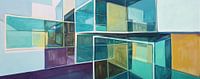 Details: abstract schilderij, moderne kunst, geometrisch, blauw, groen, geel, transparant, reflectie, oppervlaktes,…