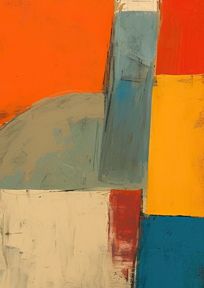 Details: vogel, abstract, modern, geel, oranje, blauw, schildersstijl, grijs, compositie, kunst
