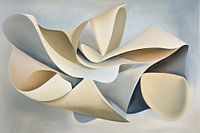 Abstracte Vormen | Abstracte Bewegingen in Zachte Kleuren - Dit is een abstract schilderij met vloeiende vormen in zachte kleuren zoals beige en blauw, die samen een dynamisch geheel vormen dat rust en beweging uitstraalt.