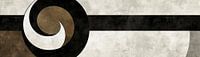 Abstracte Vormen - Met zijn gestileerde balans van bruine aardetinten en strakke zwart-witte vlakken, ademt dit abstracte kunstwerk een ingetogen elegantie uit. De symmetrie in combinatie met de cirkelvormige elementen geeft een gevoel van harmonie en moderniteit, terwijl de zichtbare textuur en subtiele krassen de anders strakke lijnen een zekere diepgang verlenen.
