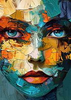 Details: abstract schilderij, vrouw, portret, blauwe ogen, kleurrijk, verfstreken, moderne kunst, vrouw schilderij, kleurrijk tijdens, abstracte…