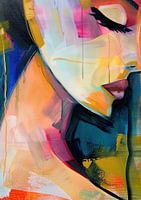 Koop dit abstracte kunstwerk Abstracte Vrouw met Opvallende Kleuren van Kunst Kriebels op canvas, aluminium dibond, (ingelijste) fotoprint, behang en ArtFrame, op maat geprint in Fine-Art kwaliteit.