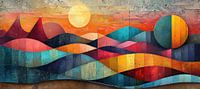 Abstracte Zonsondergang | Eclipse Over Chromatic Hills - Abstracte kleurrijke heuvels, moderne zonsondergang