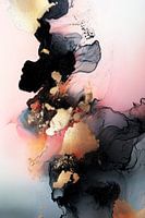 De collectie onthult een rijk en gevarieerd universum, waar vloeiende vormen vloeibare golven en elegante marmering oproepen, terwijl intensere composities herinneren aan krachtige inslagen, kosmische spurten en lichtflitsen in beweging. Sommige werken stralen een dramatische intensiteit uit dankzij de diepte van zwart en metaalcontrasten, terwijl andere de voorkeur geven aan de poëtische zachtheid van pastelachtergronden, roze tinten en lichtgevende transparanties.
