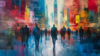 Abstracte aquarelachtergrond met zakenmensen in de stad