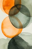 Zachte aquarellen smelten samen in een harmonieuze compositie van aardgroene tinten en warm oranje. De overlappende cirkels creëren een gevoel van beweging en lichtheid. Dit kunstwerk brengt een rustgevende esthetiek in je woonkamer en creëert een uitnodigende sfeer die aanzet tot conversatie en ontspanning.