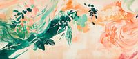 Een harmonieus samenspel van zachte kleuren en vloeiende vormen ontvouwt zich alsof de natuur zelf op het doek is gevloeid. De lichtgroene tinten en delicate roze accenten voegen een frisse wind toe aan elke kamer. Dit kunstwerk is perfect voor de woonkamer, waar het een uitnodigende en ontspannen sfeer creëert.
