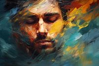 Abstracte artistieke achtergrond met een man, in olieverf ontwerp