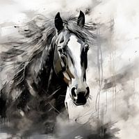 Abstracte artistieke achtergrond met een paard, in olieverf zwart-wit ontwerp