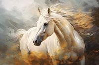 Abstracte artistieke achtergrond met een wit paard, in olieverf ontwerp
