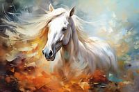 Abstracte artistieke achtergrond met een wit paard, in olieverf ontwerp