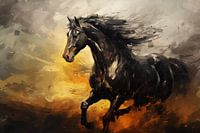 Abstracte artistieke achtergrond met een zwart paard, in olieverf ontwerp