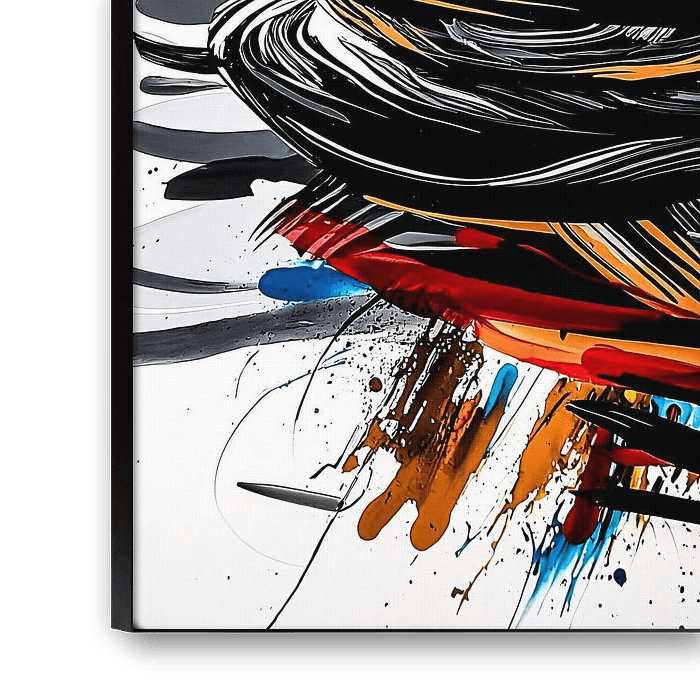 Dit moderne kunstwerk combineert krachtige penseelstreken met een unieke compositie die een balans tussen rust en dynamiek uitstraalt. De steenachtige vormen in het middelpunt contrasteren prachtig met de explosieve kleuren op de achtergrond, wat het ontwerp zowel levendig als verfijnd maakt. Ideaal als blikvanger in een eigentijdse interieursetting, het brengt energie en creativiteit in elke ruimte. Perfect voor liefhebbers van abstracte kunst met een modern randje.