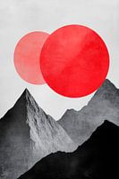 Koop dit landschapskunstwerk Abstracte bergen met rode zonnen van Poster Art Shop als print op canvas, aluminium dibond, (ingelijste) fotoprint, behang en ArtFrame. Voor jou op maat geprint in Fine-Art kwaliteit.