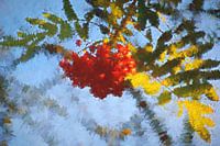 Tijdens onze dagelijkse wandeling zag ik de feloranje bessen op een boom en vroeg me af hoe ze eruit zouden zien als ik ze schilderde. Omdat ik geen schilder ben, gebruikte ik Topaz software om deze abstracte versie van de foto te maken.