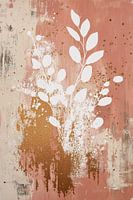 Dit unieke ontwerp combineert abstractie en natuur op een prachtige manier. Met zachte tinten zoals roze, beige en taupe, brengt het een rustgevend gevoel in elke ruimte. De witte, gestileerde bladeren vormen een speels contrast met de spetters en organische texturen op de achtergrond. De gouden accenten voegen een vleugje luxe toe aan het ontwerp. Dit schilderij is perfect voor moderne interieurs, vooral in een slaapkamer of kantoor, waar het een vleugje verfijning en rust kan brengen. De minimalistische maar warme compositie maakt het ook geschikt voor verschillende stijlen, van minimalistisch tot eclectisch.