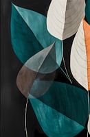Een abstracte creatie van bladeren weergegeven in groene, beige, grijze en oranje, natuurlijke kleuren.
