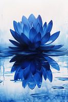 Dit kunstwerk toont een prachtige blauwe lotusbloem die sierlijk op het wateroppervlak rust, waarbij elk detail van de bloemblaadjes met artistieke precisie is vastgelegd. De reflectie op het water voegt een extra dimensie toe, wat zorgt voor een rustgevend en meditatief gevoel. Deze afbeelding zou perfect passen in een moderne inrichting waar een vleugje natuur gewenst is, zonder te overweldigen met kleur. Het gebruik van blauwe en witte tinten maakt het stuk veelzijdig genoeg om in verschillende ruimtes te hangen, van een woonkamer tot een kantoor.