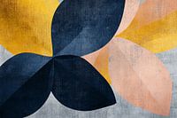 Dit moderne en abstracte ontwerp met grote, overlappende bladeren in warme tinten en diepe blauwtinten brengt een rustige, natuurlijke sfeer in elke ruimte. Het is een perfecte decoratie voor wie houdt van minimalistische en stijlvolle kunst, met een vleugje geometrische eenvoud. Door de contrasten en warme kleuren straalt het schilderij een subtiele dynamiek uit die toch harmonieus blijft. Ideaal voor de slaapkamer of kantoorruimte waar je een vleugje natuur wilt toevoegen zonder afleiding, dit ontwerp voegt kleur en diepte toe zonder overweldigend te zijn.