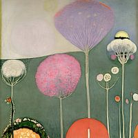 Een kunstwerk onthult abstracte bloemen, geschilderd in zachte pastelkleuren die vervagen en in elkaar overvloeien. De bloemblaadjes lijken bijna te dansen in een dromerige harmonie. Deze kunstzinnige weergave nodigt de kijker uit om de schoonheid van de bloemen te ervaren op een manier die de grenzen van de realiteit overschrijdt.