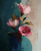 Abstracte bloemen in warme pastelkleuren. Kies zelf het formaat en materiaal bij dit werk en maak er een echte blikvanger van voor je interieur.